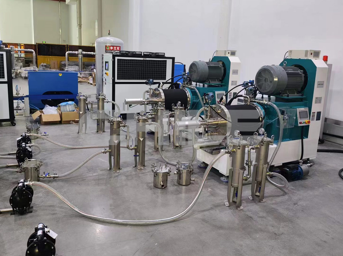 蘇州某新能源有限公司 兩臺(tái)50L砂磨機(jī)調(diào)試成功