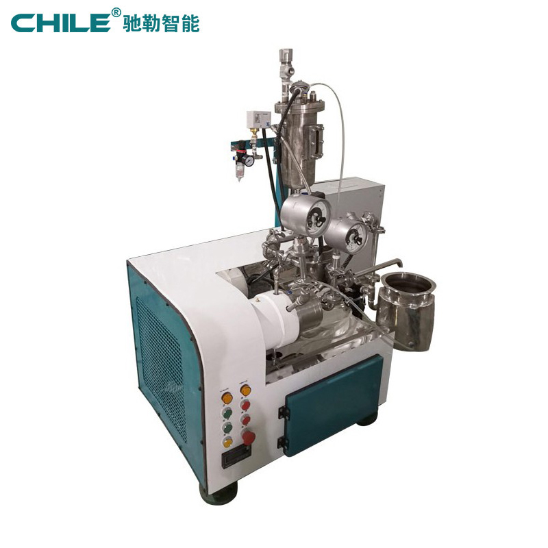 為產(chǎn)品實(shí)驗(yàn)、開發(fā)和質(zhì)量控制的理想工具。分散過程中,產(chǎn)品被送入密閉式研磨腔,經(jīng)由棒銷攪拌器高速攪拌,形成循環(huán)研磨,分散后,集成的泵壓力系統(tǒng)順利排出研磨腔。