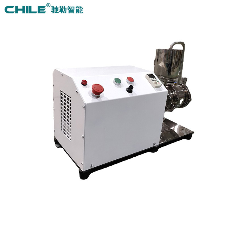 設(shè)備配有變頻器,可直接控制設(shè)備的啟動(dòng)及調(diào)速;人工將需要研磨的物料倒入進(jìn)料斗內(nèi),設(shè)備帶自循環(huán)功能,開啟機(jī)器便可完成研磨工序,研磨完成后將物料從研磨腔底部排料口排出即可。