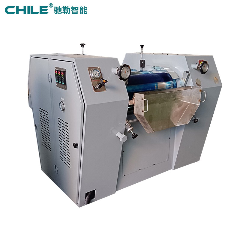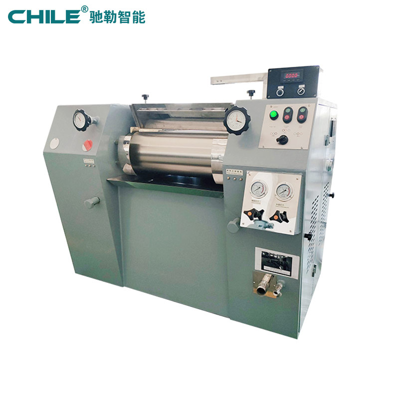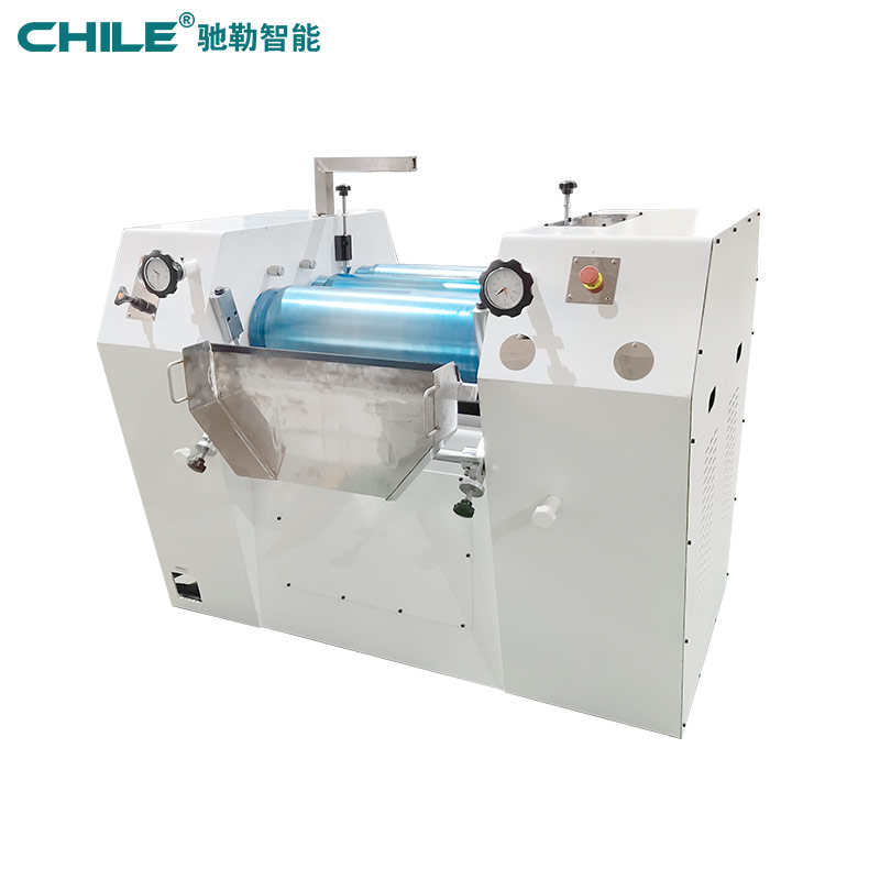 加料裝置把所需研磨的物料倒入慢輥與中輥進(jìn)行第一次擠壓研磨,再轉(zhuǎn)入與快輥作第二次研磨,經(jīng)二次研磨后,由出料刀片鏟下,完成一個工作過程。物料在三根輥筒之間多次地被混合、研磨從而達(dá)到物料的細(xì)度等要求。研磨的次數(shù)與細(xì)度,一般與物料的質(zhì)量與前道工序的好壞有直接的關(guān)聯(lián)。