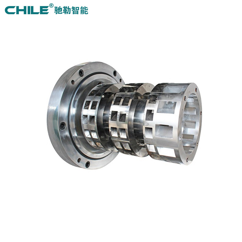 高速的渦輪式分散器將研磨室內(nèi)軸向移動的粒子切換成沿圓周方向若干個粒子流,與傳統(tǒng)的單一的粒子流相比,大大增加了剪切破碎的動能。渦輪分散器徑向的壓力差,使得粒子流不需強(qiáng)烈接觸分散器即可獲取極強(qiáng)的蝸旋力,,避免傳統(tǒng)結(jié)構(gòu)中強(qiáng)烈撞擊所產(chǎn)生過多的熱能耗損。同時提高了破碎當(dāng)量,延長了分散器的壽命。