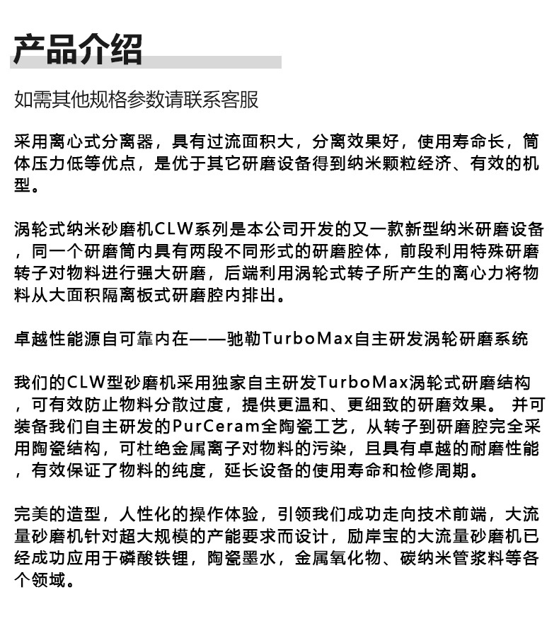 馳勒上海機械科技有限公司,優(yōu)質(zhì)砂磨機廠家。產(chǎn)品規(guī)格齊全,包括砂磨機,納米砂磨機,實驗室砂磨機等,設備應用廣泛,涉及涂料、油墨、染料、農(nóng)藥、陶瓷、電池等十多個行業(yè),研發(fā)/制造/銷售/維護一站式服務,濕法研磨解決方案提供商。